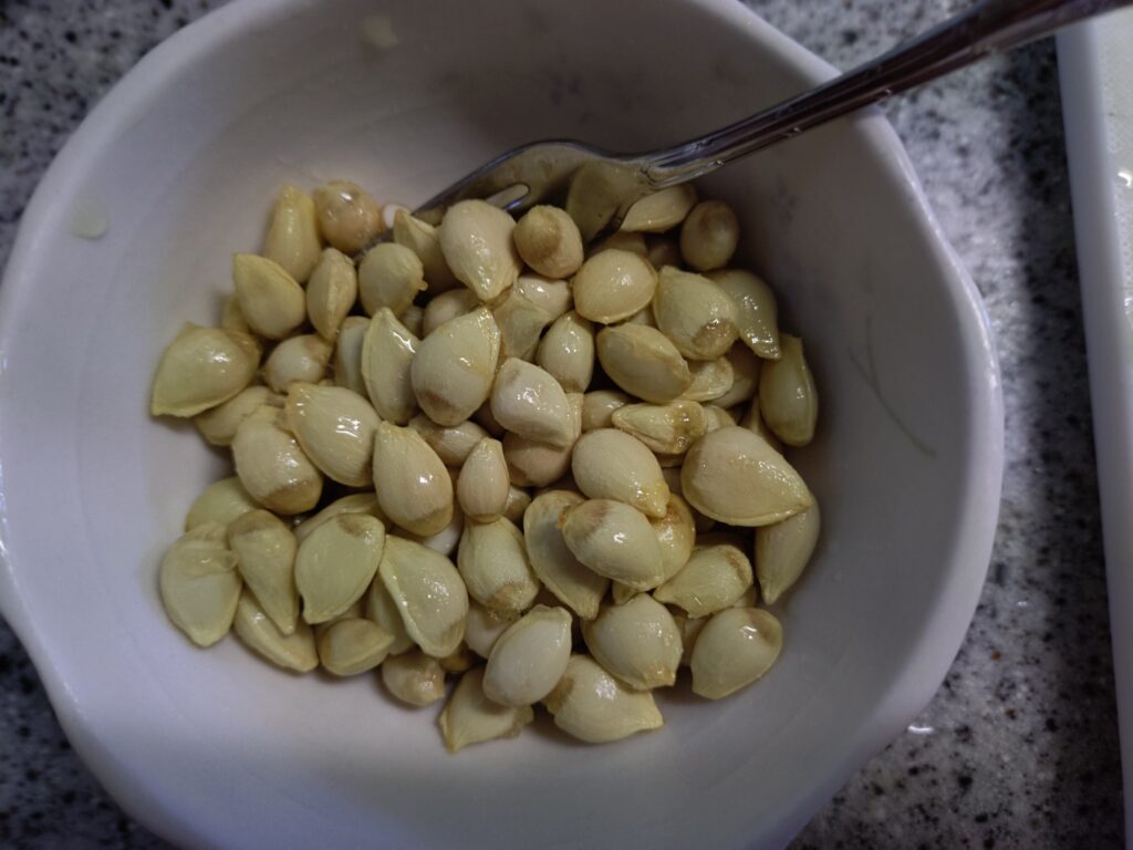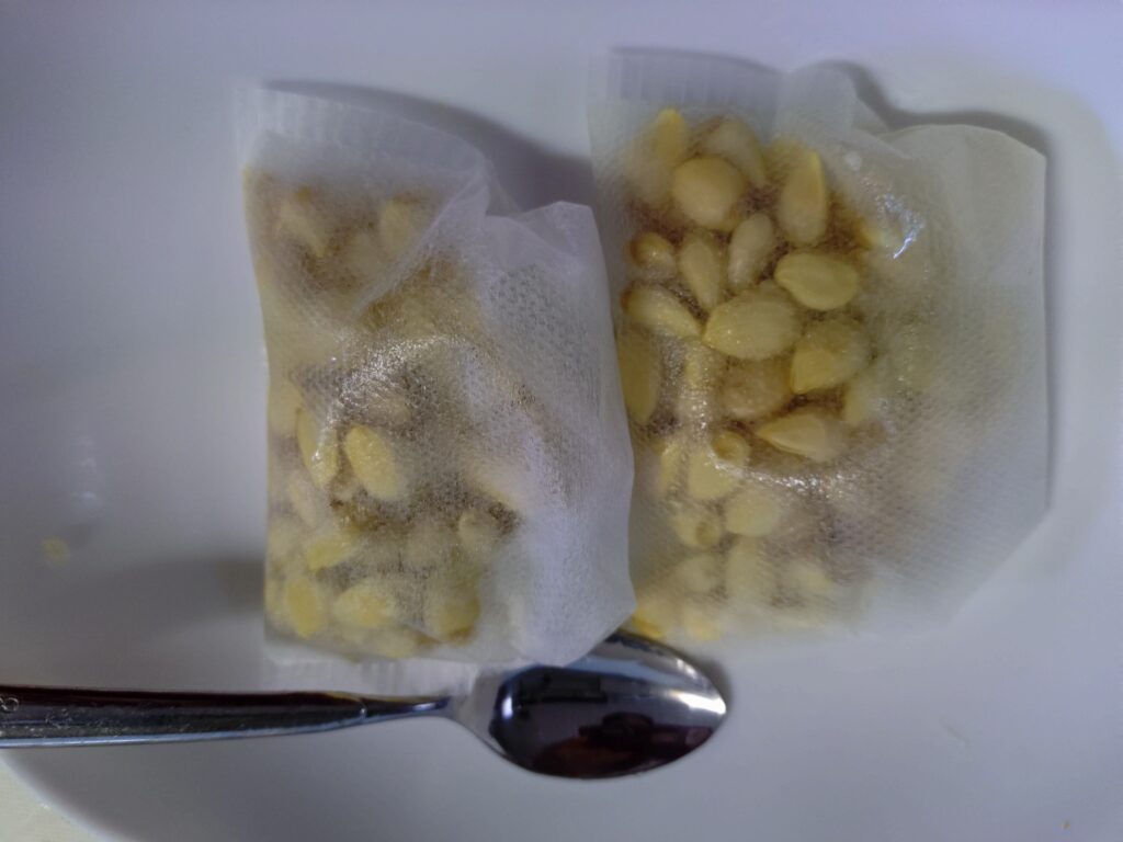 ⑤中ワタを取ります。この時に残りの種も取ります。