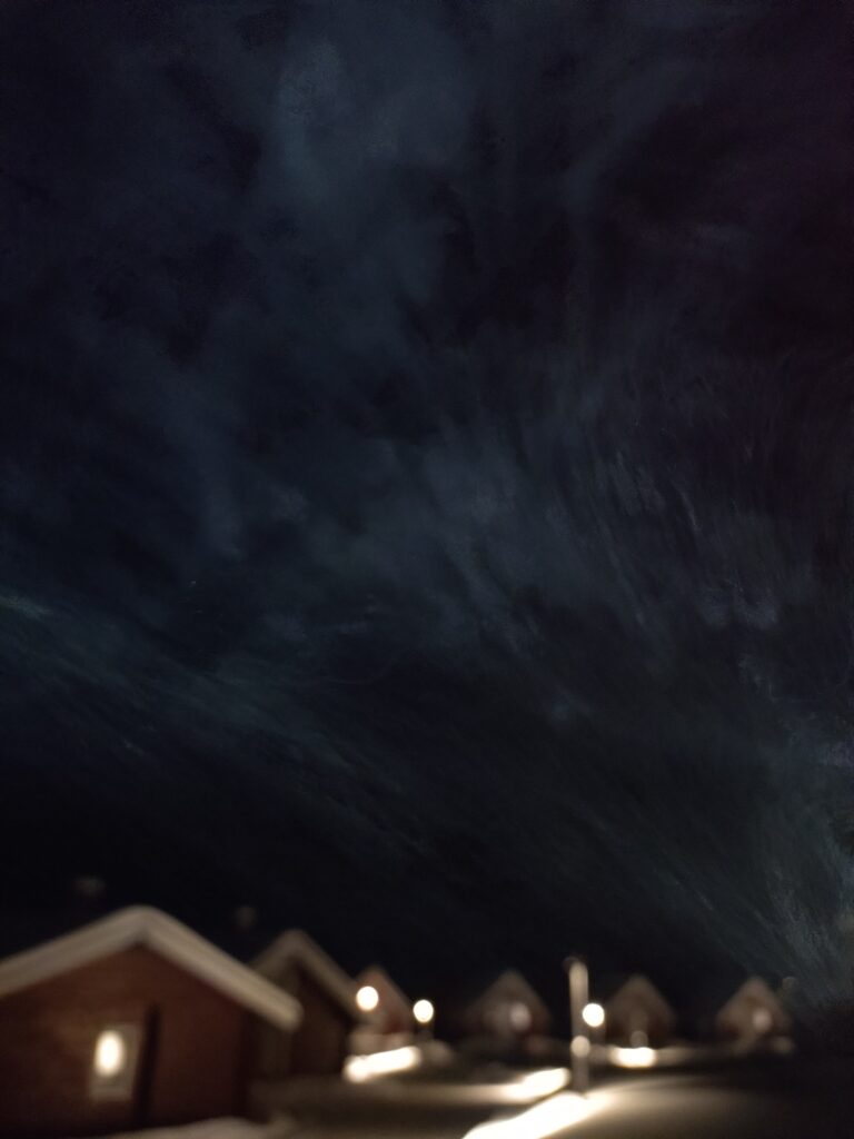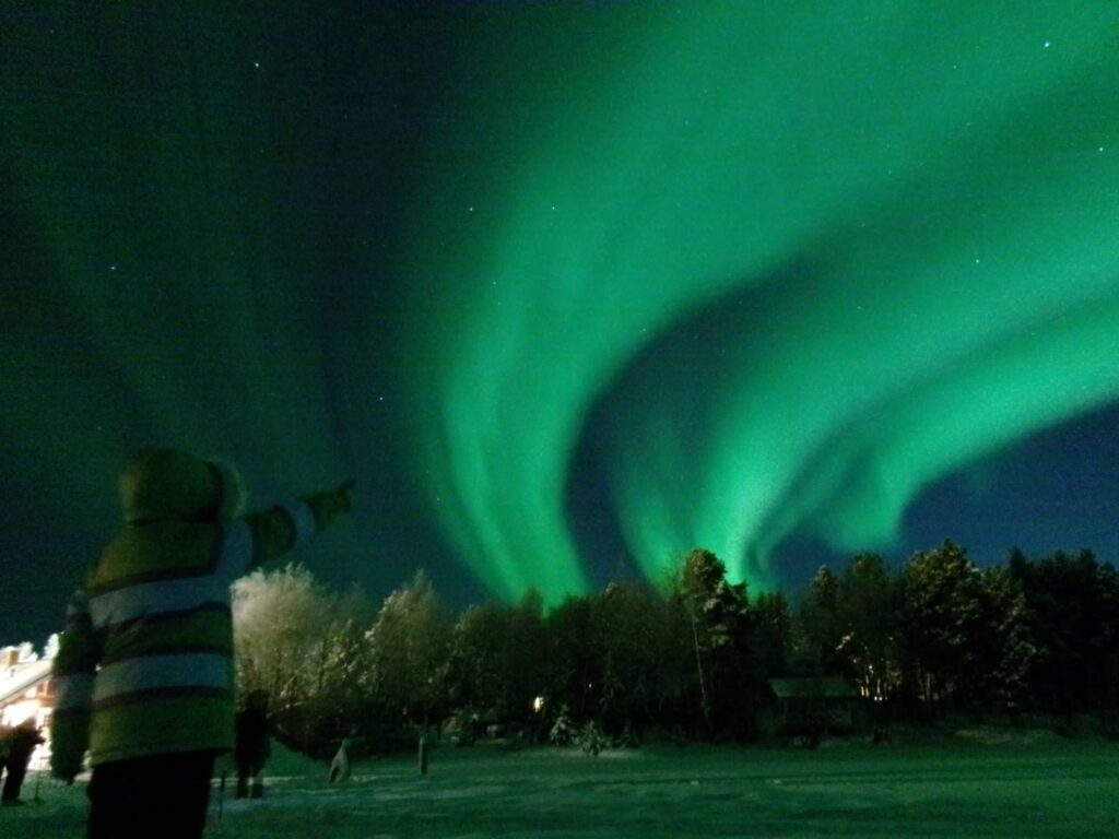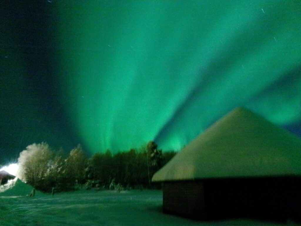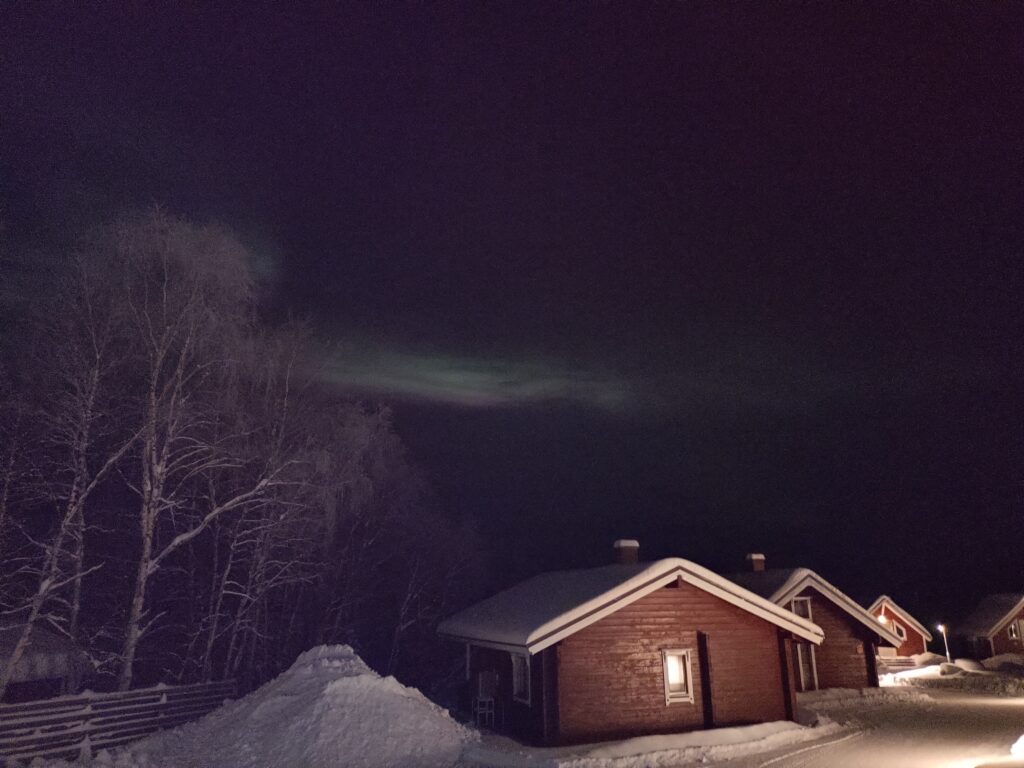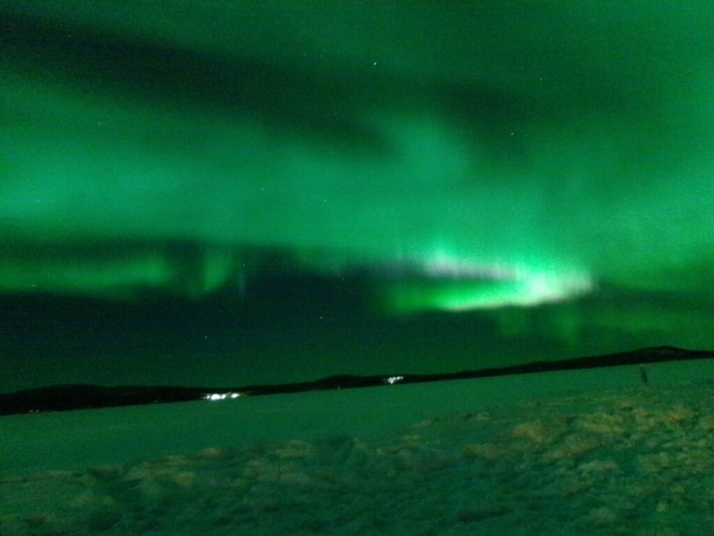 10時に外に出ると、さらに濃いオーロラが見えました。肉眼でも緑色に見える部分もありました。