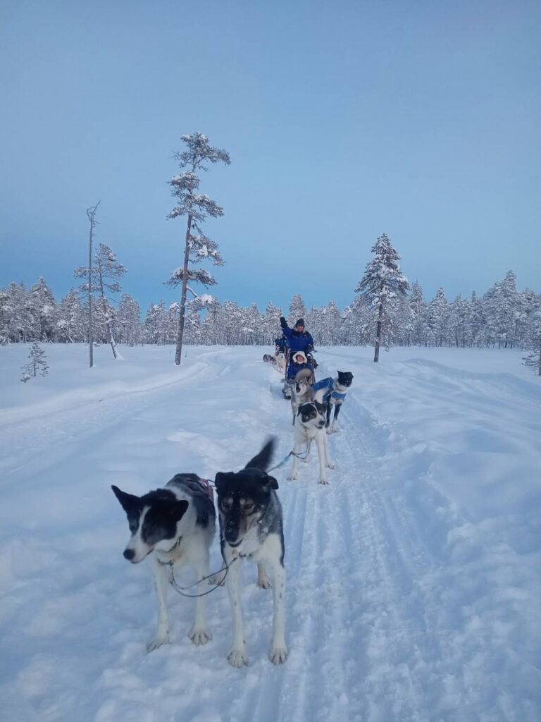 昨日のトナカイと同じツアー会社Visit Inari Safari officeで「ハスキー体験」をしました。昨日使用したつなぎ服を持って帰って、着てきました。詳しくは「犬ぞり体験」🔎で