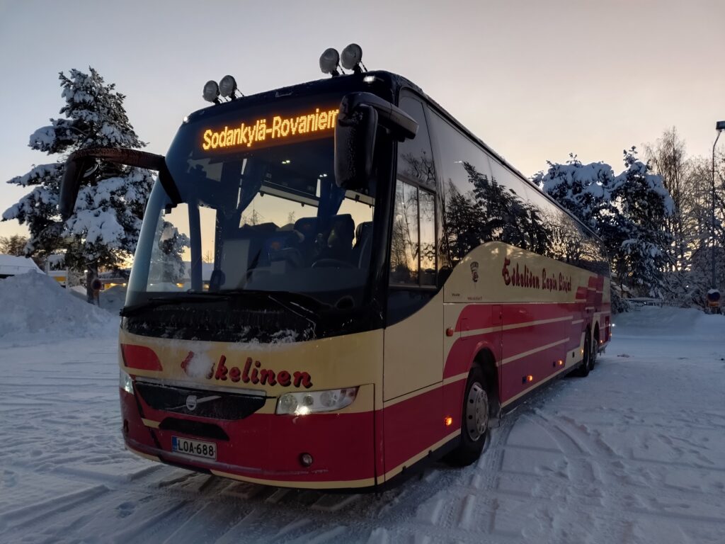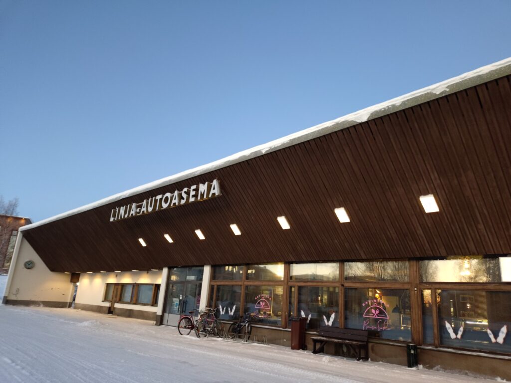 ホテル前午前7時20分発の長距離路線バスでロヴァニエミまで向かいます。