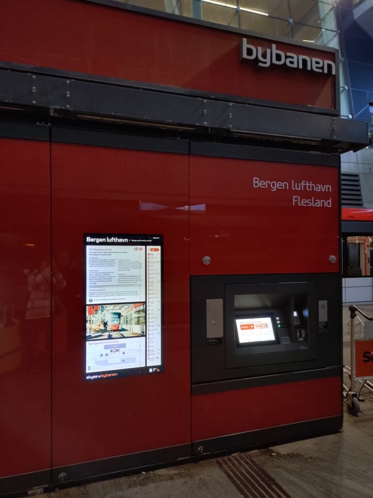 ベルゲン空港まで、2日前と同じライトレールで行きました。もう切符の買い方は分かります。バス停でも自動販売機がありました。ルートは2種類です。空港はルート1です。乗る前に確認して良かったわー(⁠◍⁠•⁠ᴗ⁠•⁠◍⁠)