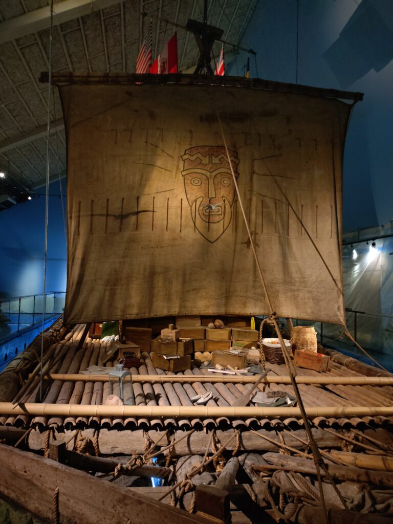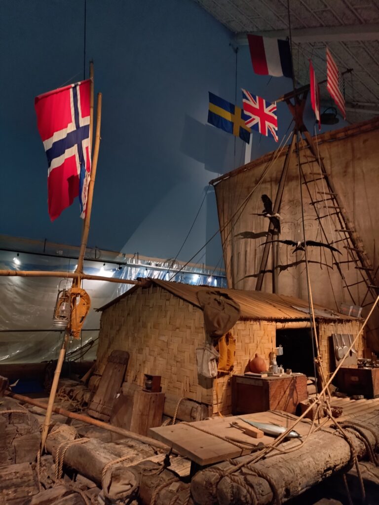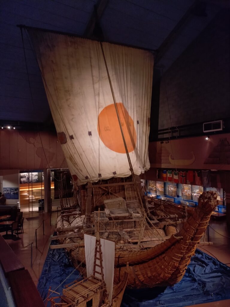 コンチキ号は、藁で作られた船で、南洋に行きました。パンフレットがないか聞くと、売り物のパンフレットを無料でくれました。いい人や!