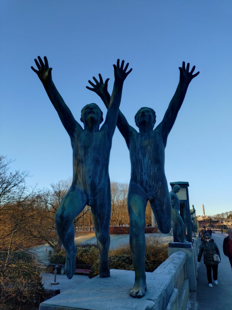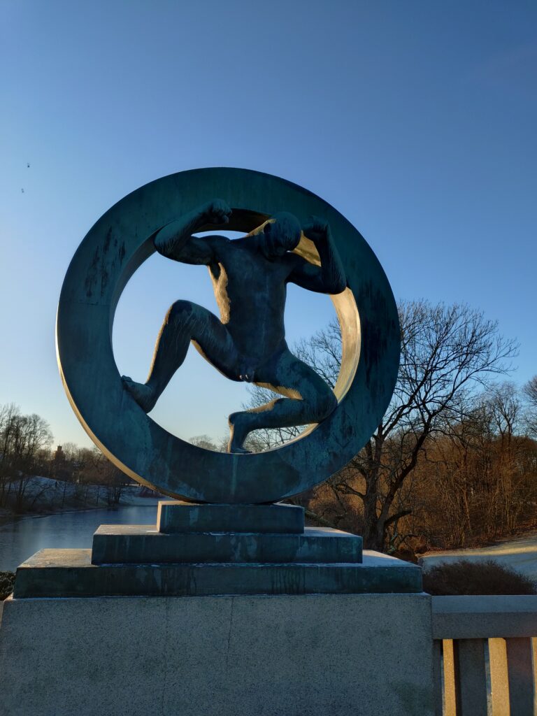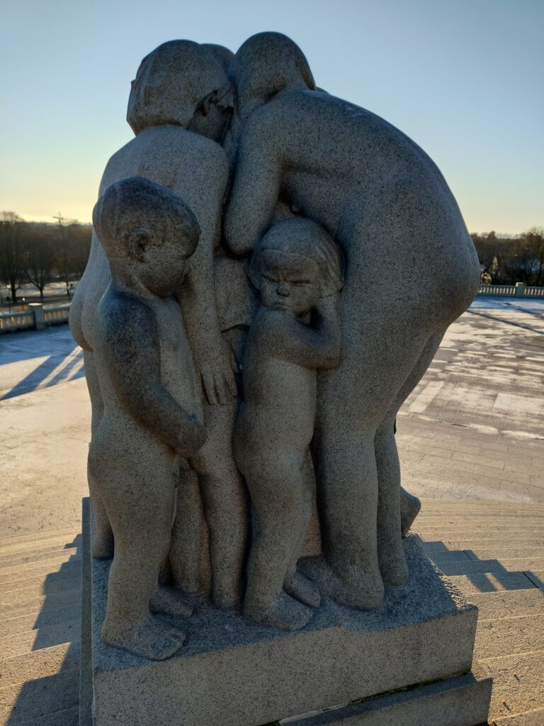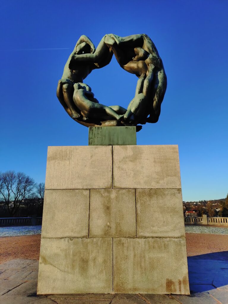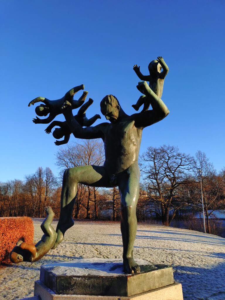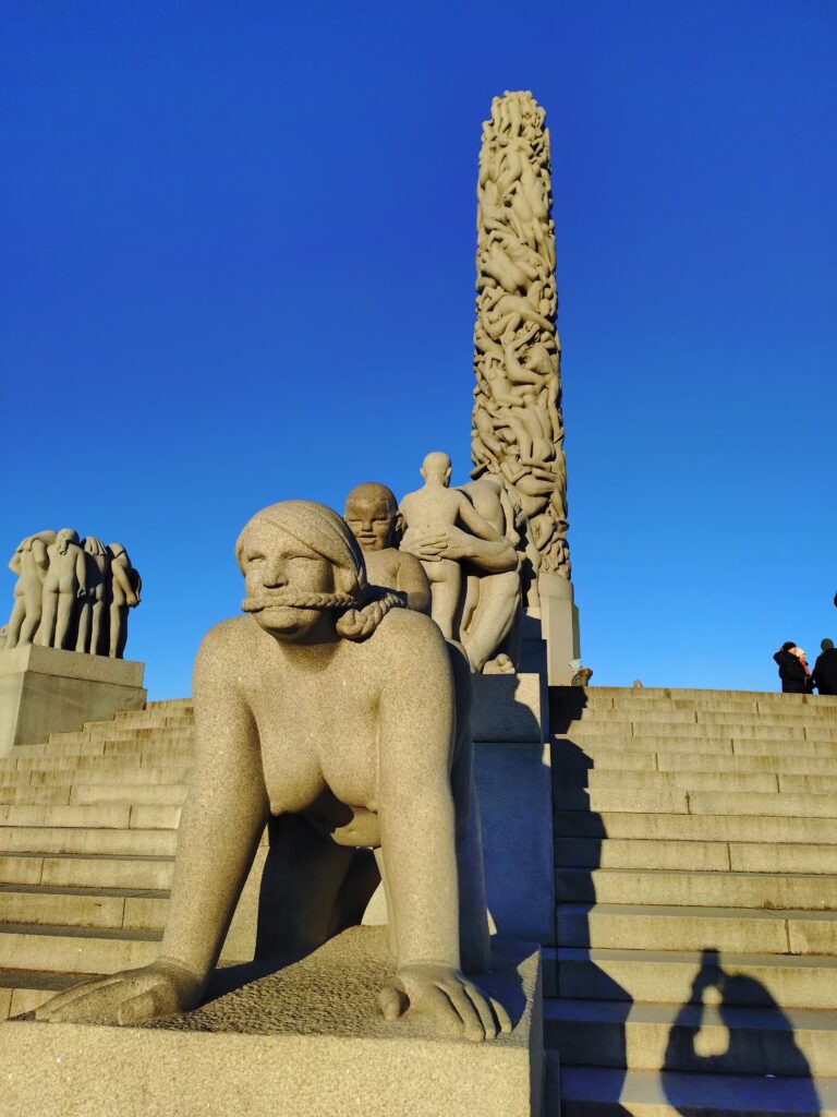 ふたたびバスに乗ってヴィーゲラン公園に行きました。美術館は閉まっていましたが、ヴィーゲランの彫刻が展示されている公園があるので、これは入れるはず。無料で入ることができました。ユニークな彫刻がいっぱいです。
