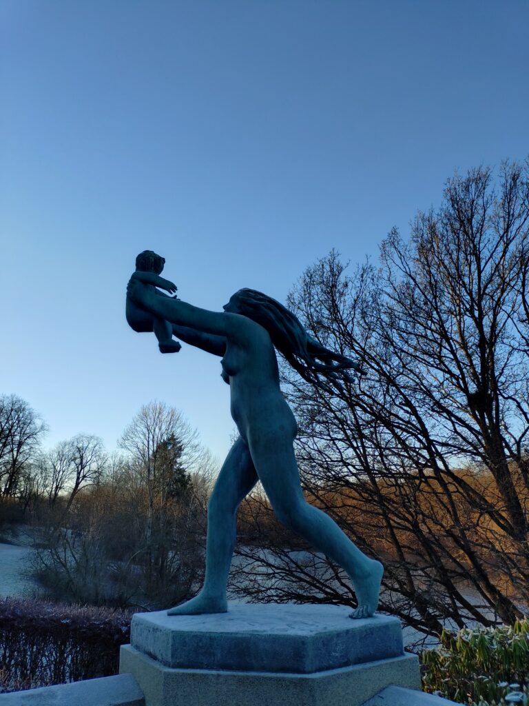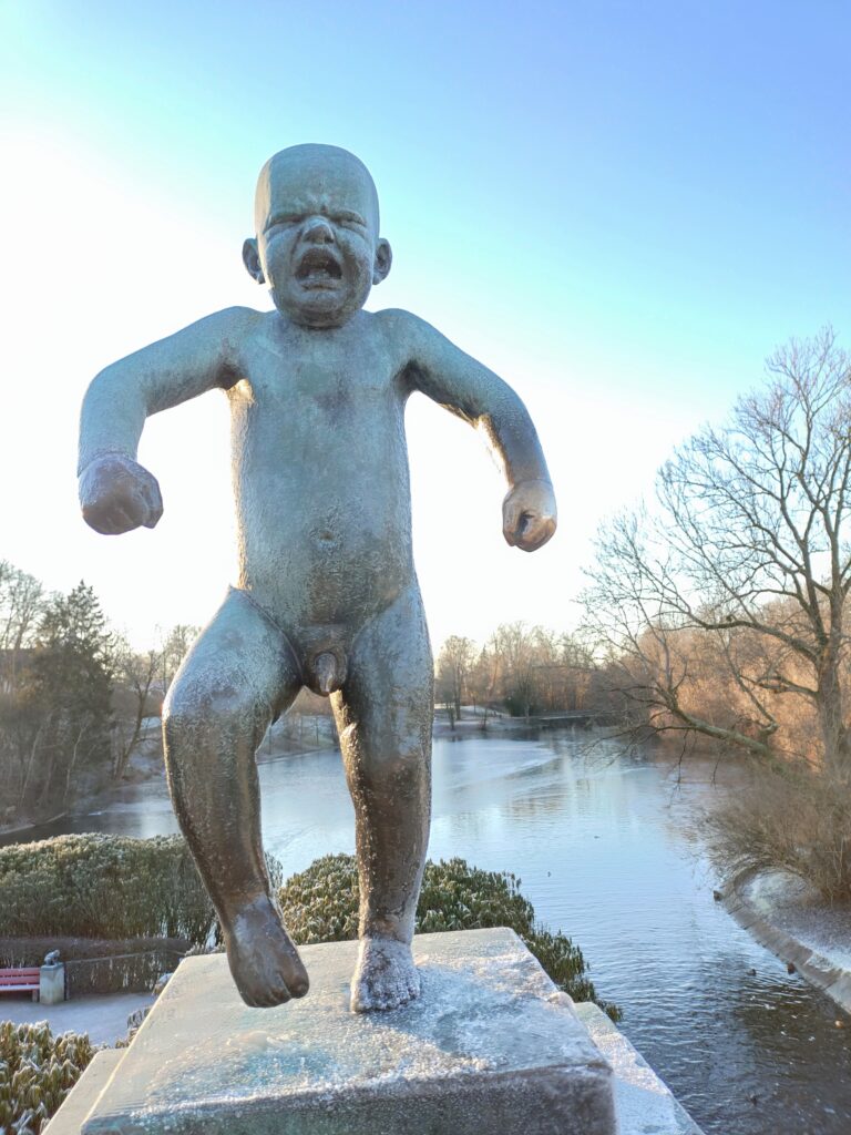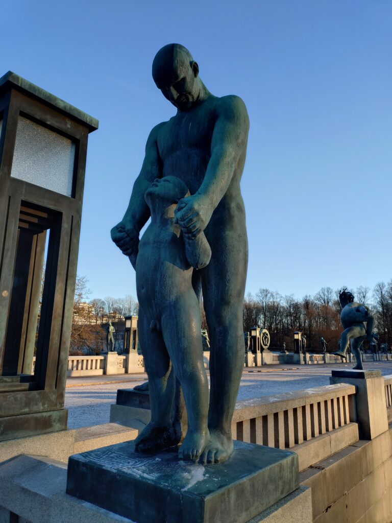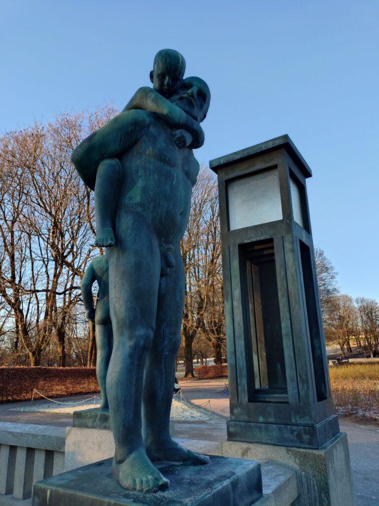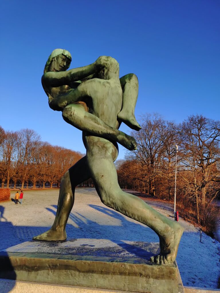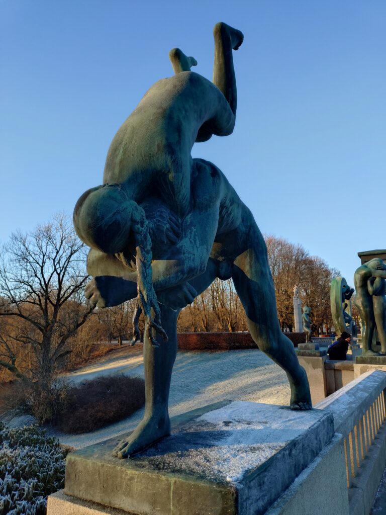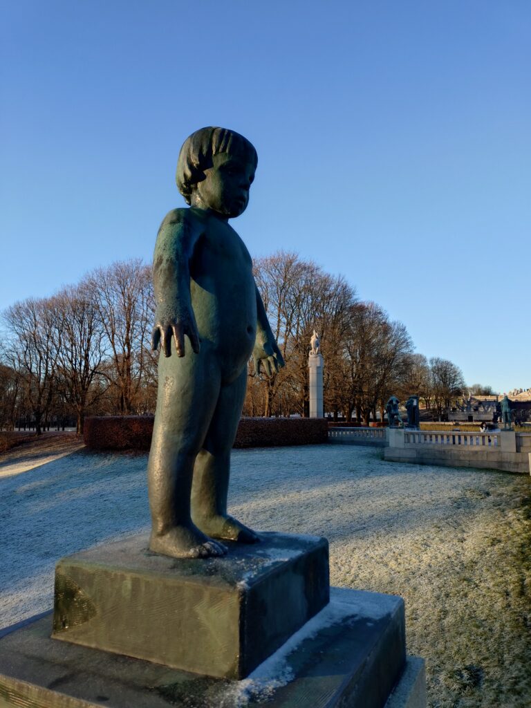 ふたたびバスに乗ってヴィーゲラン公園に行きました。美術館は閉まっていましたが、ヴィーゲランの彫刻が展示されている公園があるので、これは入れるはず。無料で入ることができました。ユニークな彫刻がいっぱいです。