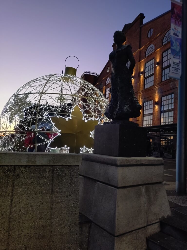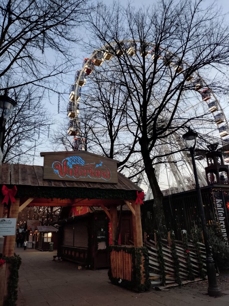 まだ夕方ですが、イルミネーションが、あちこちにあります。でも、お店は閉まっています。観覧車のイルミネーションもきれいでしたが、観覧車はお休みでした。乗りたかったわ…