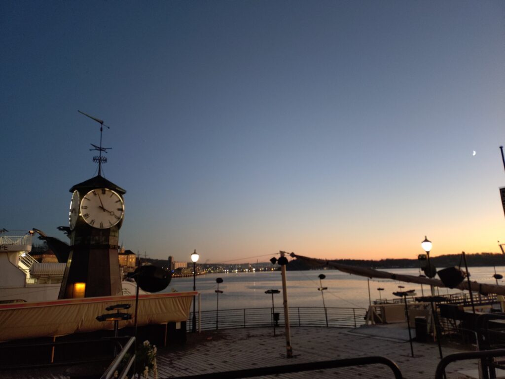 夕方から港に行きましたが、夕日とイルミネーションがきれいです。時間4時です。