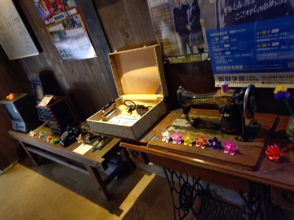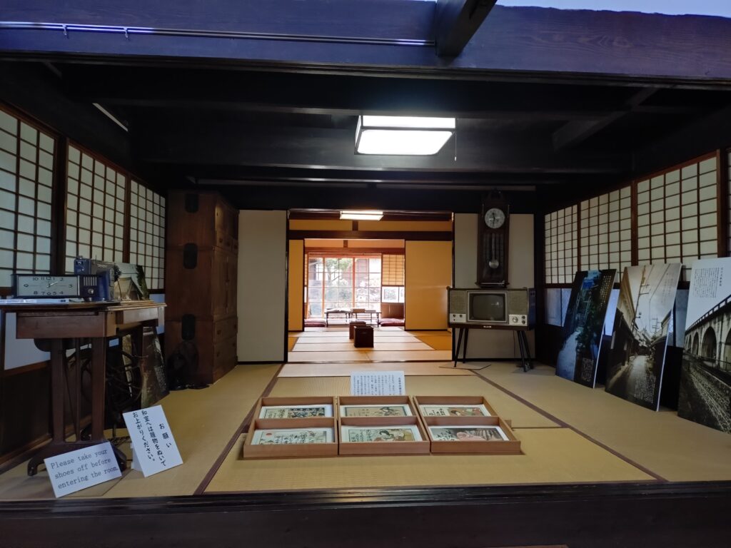 明治時代の町家の風情が感じられる建物の中に、新町やその周辺の展示物があります。畳に腰掛けてホッと一息できる空間です。