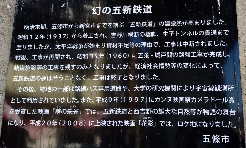 明治時代に建設が開始されたものの、戦争や経済悪化で、工事が中断したため、幻の五新鉄道と呼ばれています。