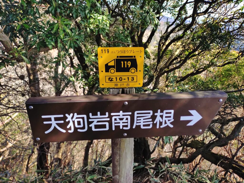 途中「天狗岩」の標識が見えたので、行ってみようと思ったら、工事車両が停まっていました。