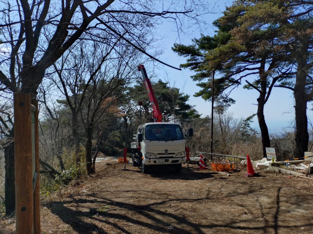 ここは景色見るだけなので、駐車場に車停めて上りました。車がいっぱいあると思ったら、工事に来ている方の車でした。