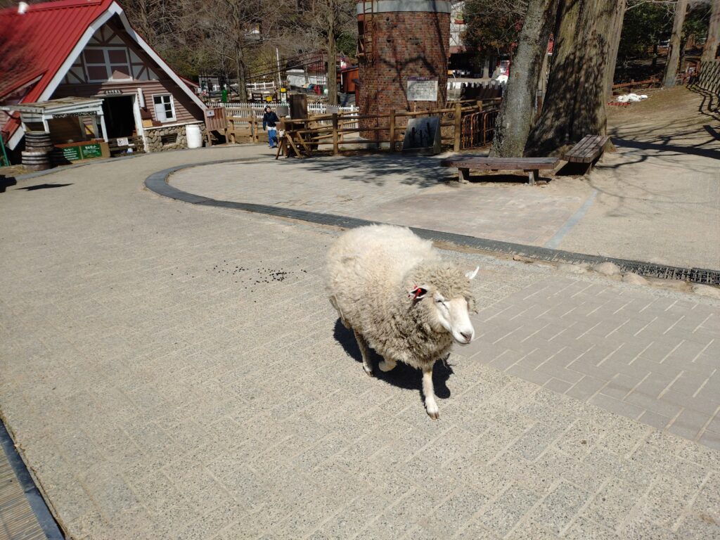 羊が放し飼いされていて、あちこち自由に歩いていました。