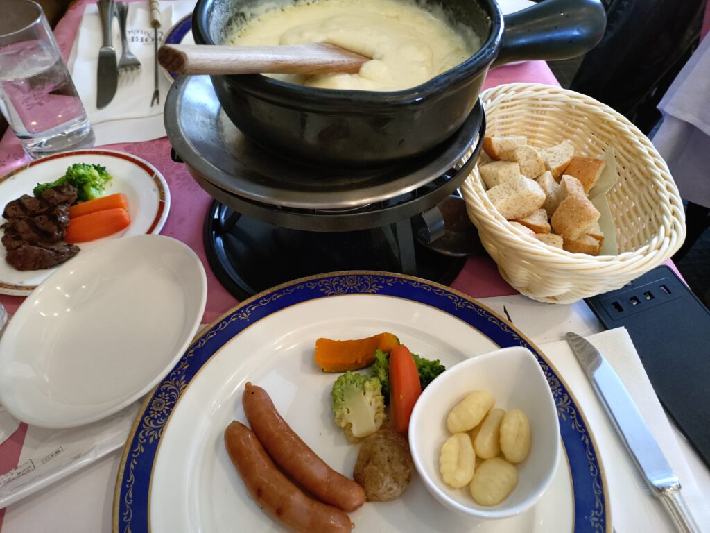 ここのチーズはコンテストで全国2位になったそうです。ランチは、チーズフォンデュにしました。