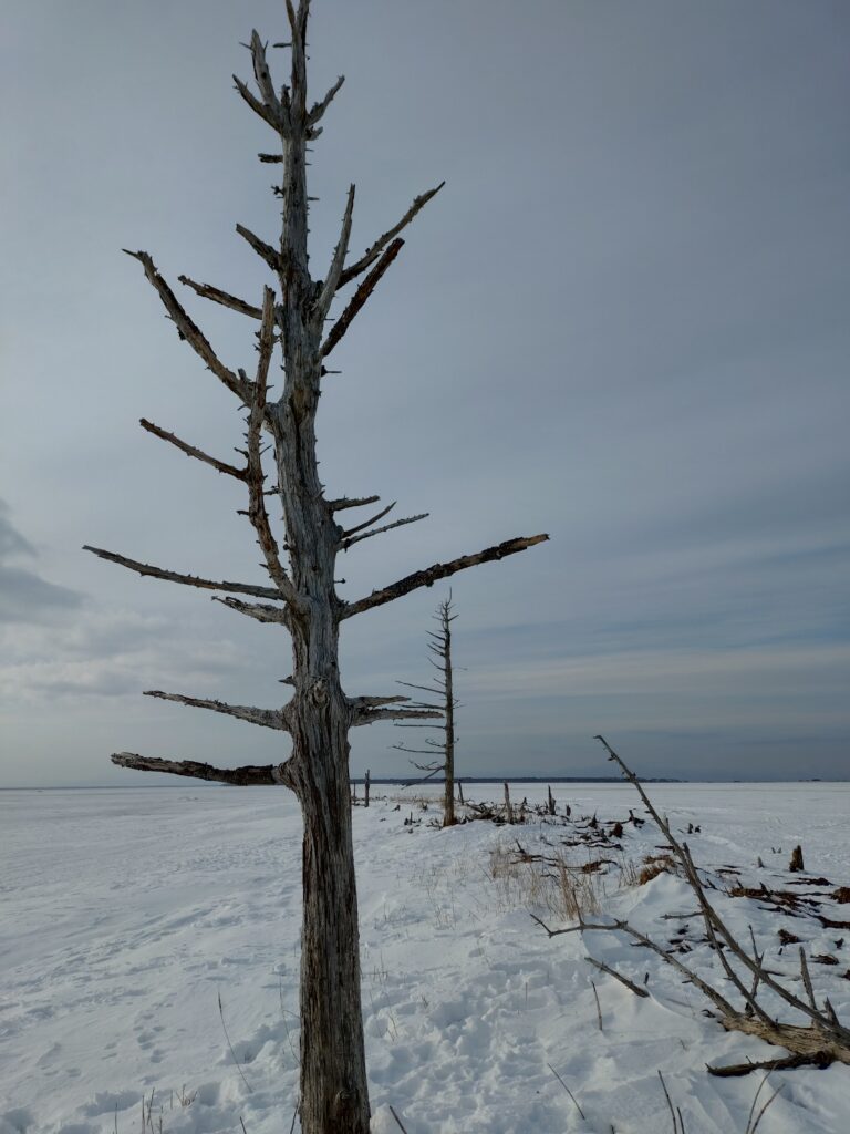 この場所は昔は森だったけれど、地盤沈下により海になったので、海水により枯れたトド松がトドワラになったそうです。昔はたくさん立っていて荒涼とした風景だったそうですが、今はもう3本しかありません。