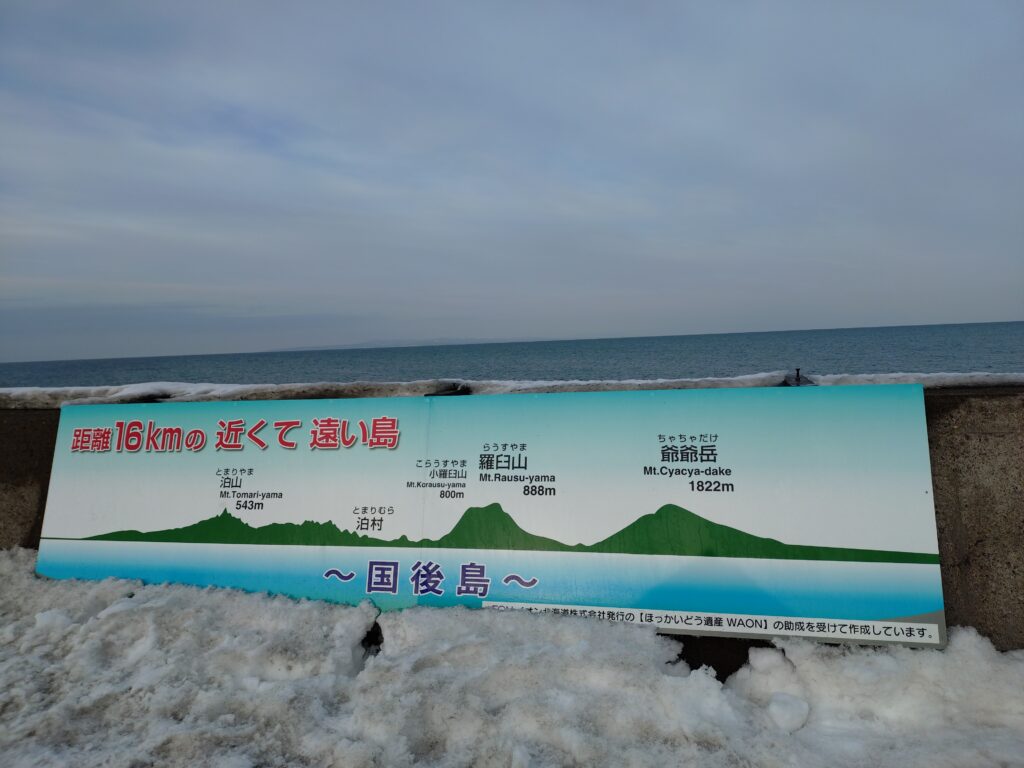 大昔は国後島とつながっていた根付半島。第二次世界大戦後、国後島がソ連軍の乗っ取られて、根付半島に避難して来た日本人もいます。ソリのツアーの方も、おばあさんが国後島に住んでいて、ソ連軍がやってきたので、逃げてきたそうです。