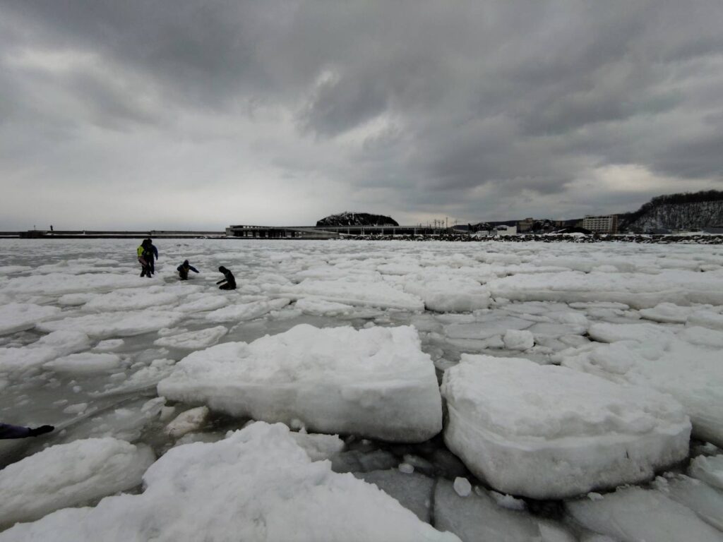 道の駅シリエトクから歩いて流氷が着岸しているところまで行きます。