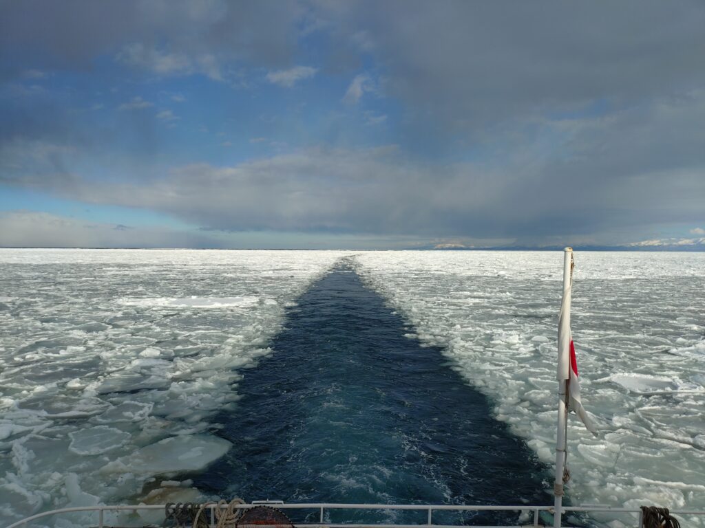 最初は海ばかりですが、少しずつ流氷が増えて、かなりの量になって見事です。