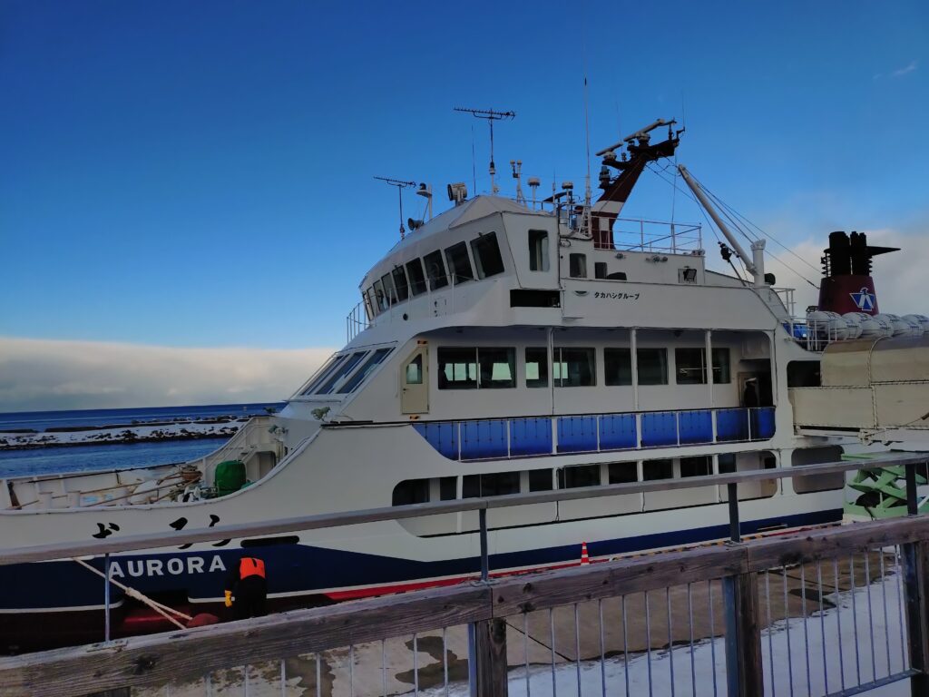 紋別で流氷船ガリンコが出ています。これも予約が取れなくて、8時からなら取れるということで、宿泊施設を変更して、前日に紋別に泊まることにしました。