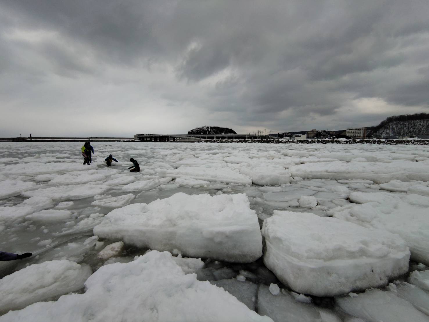 ところが…夜に雪と暴風!一夜明けると、流氷は海上沖に流されていました(^_^;)…流氷は来たり離れたりするらしいです…