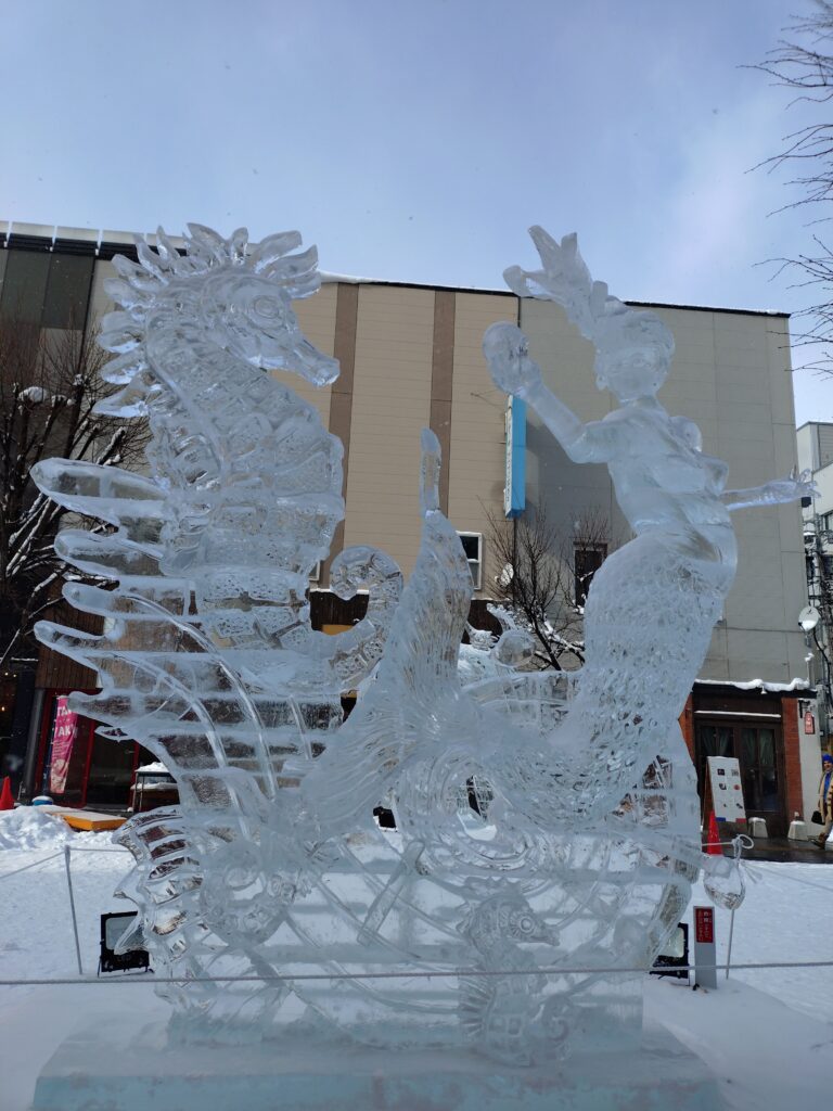 メイン会場は子どもたちが多く、楽しそうです。サブ会場は氷彫刻がとてもきれいです。夜にライトアップしたらもっときれいだと思います。でも、私たちは午前中で札幌に移動しました。