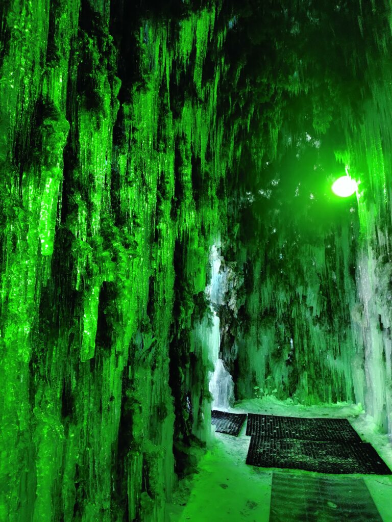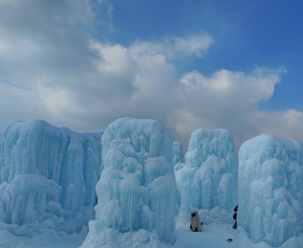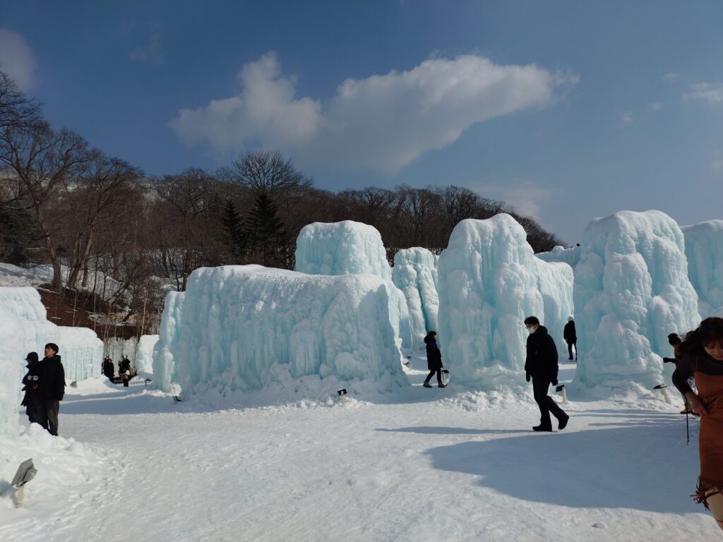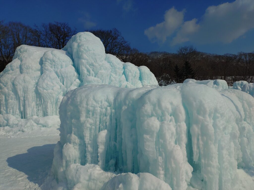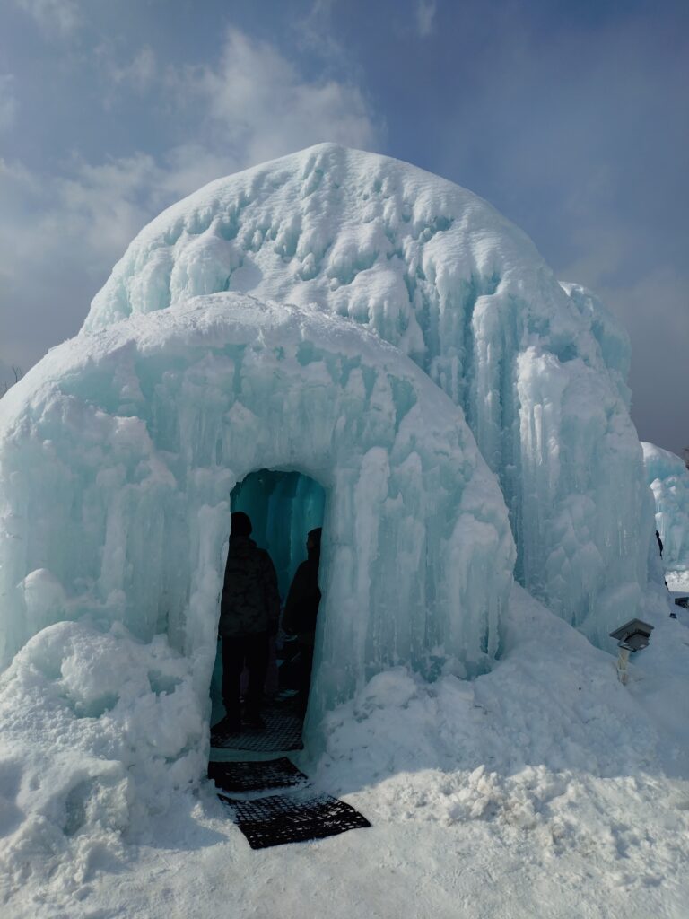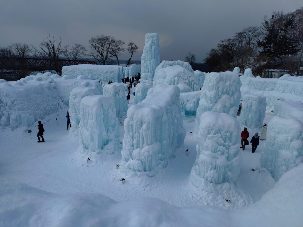 ここの作品は基礎の骨組みを作って、そこに水をかけて、建物を作ります。かなり大きいです。