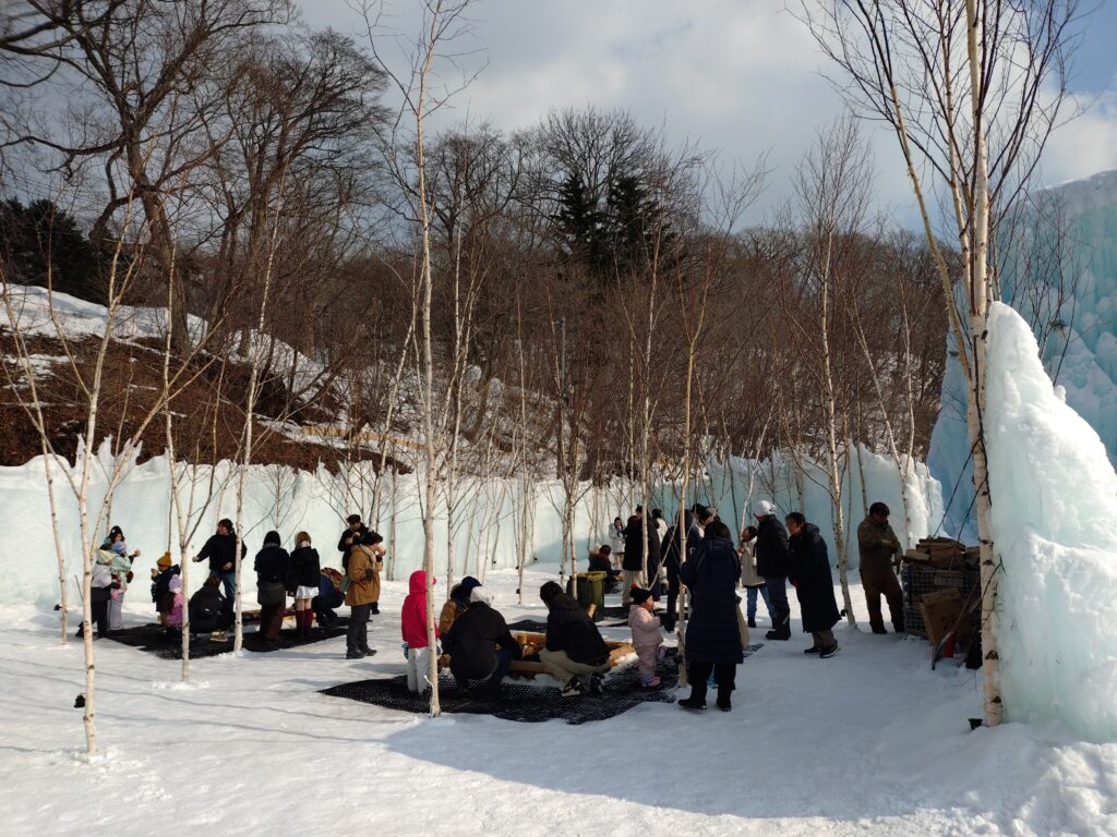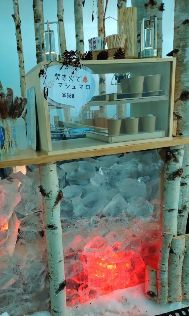 焚き火があって、そこでマシュマロを焼いている人が何人かいて、私も隣の店でマシュマロを買いました。