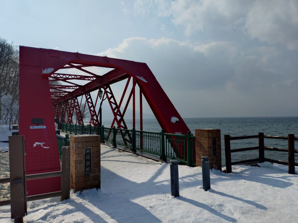 赤い鉄橋(山線鉄橋)は道内最後の鉄道橋だそうです。景色に溶け込んでいます。