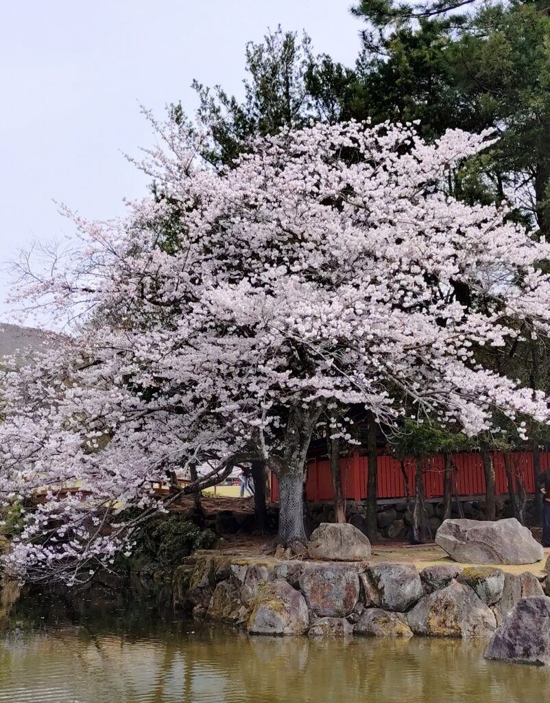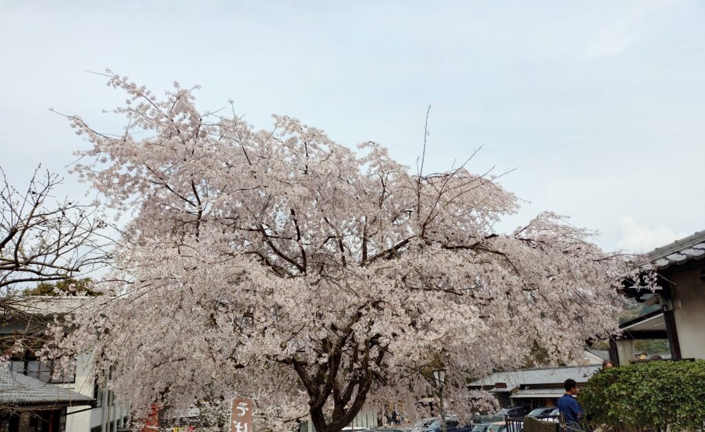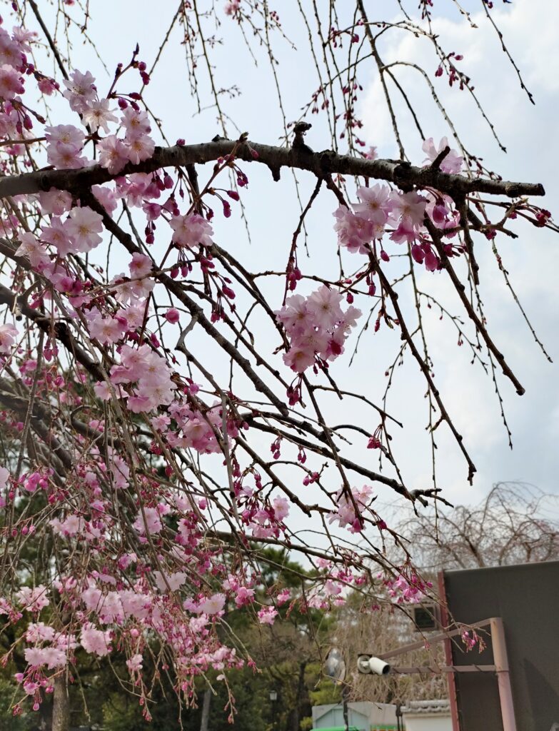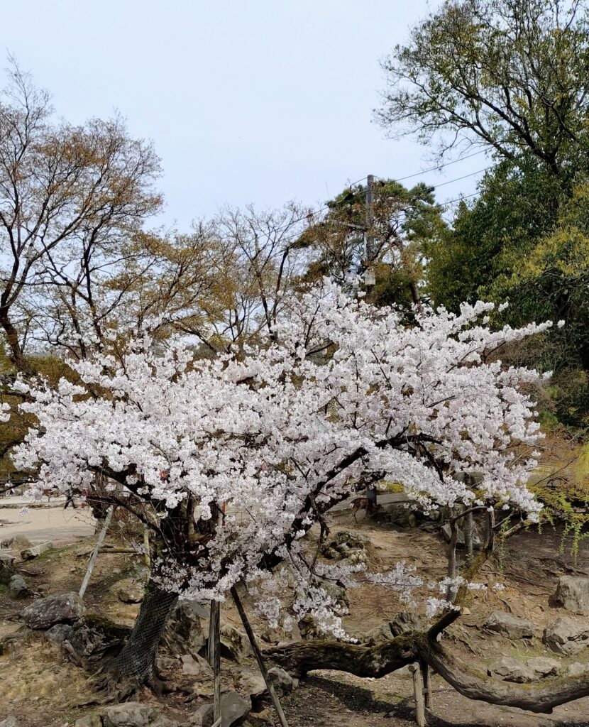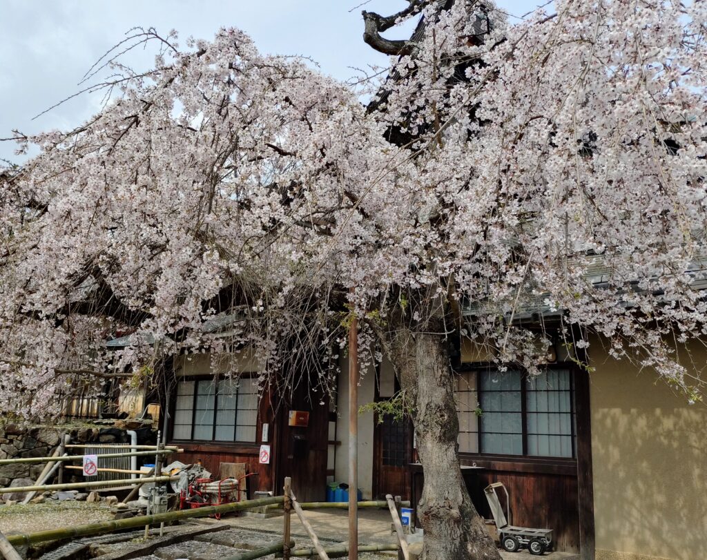 ここに氷室神社から分けてもらった枝垂れ桜がありました。氷室神社の桜を見たあと、ぜひ見てもらいたい桜です。