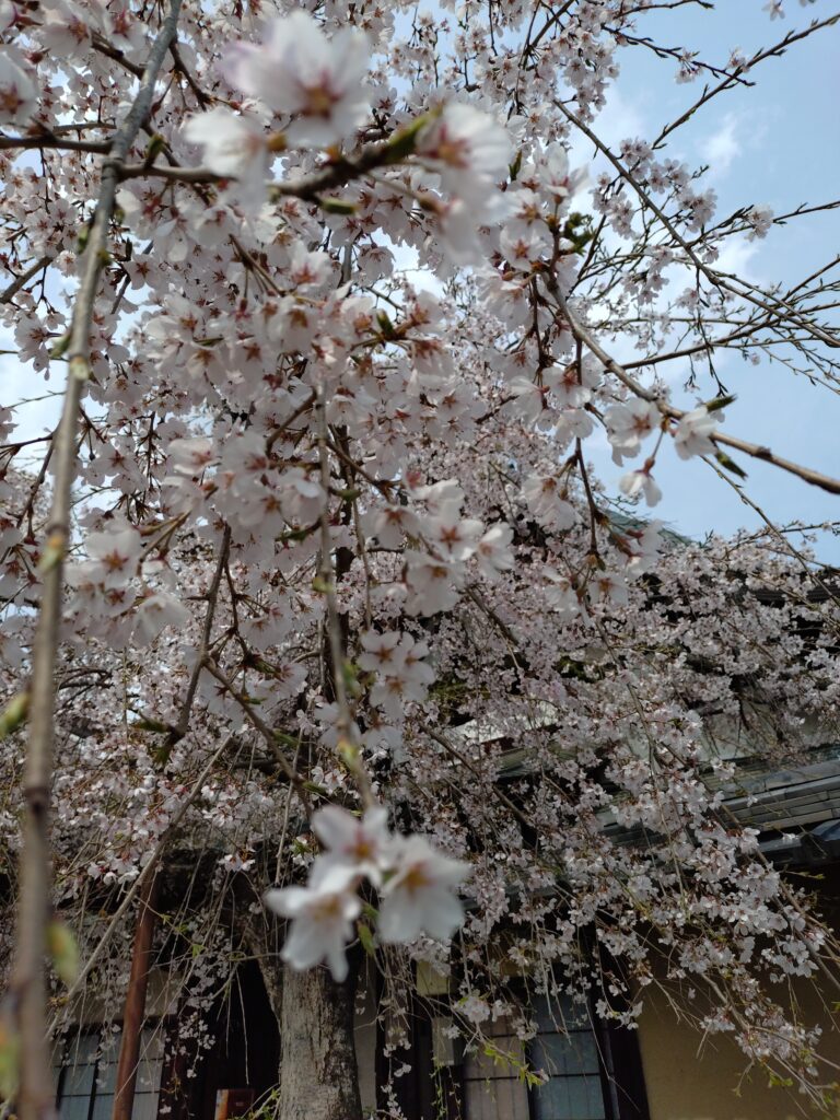 奥に行くと見事な枝垂れ桜があります。散り初めです。