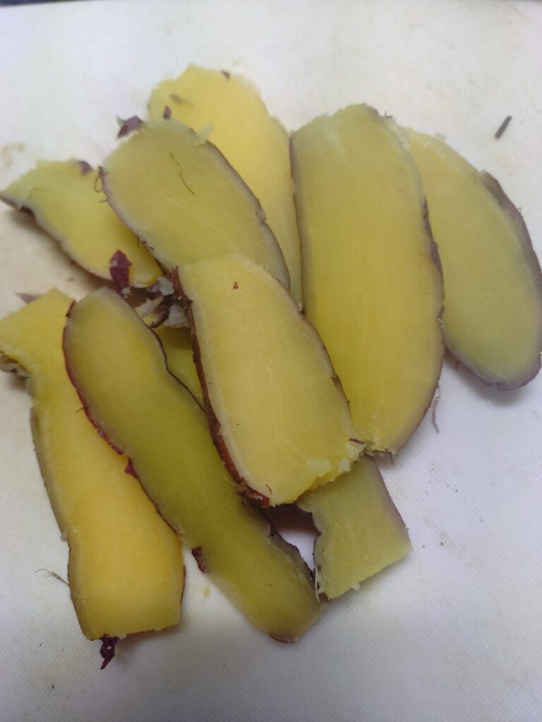 さつまいもがいっぱいあるので、スイートポテト🔎、芋ようかん、大学芋、スイートポテトパイ、焼き芋🔎、さつまいもケーキ🔎蒸しパン🔎芋けんぴ🔎を作りました。今回は干し芋を作りました。作り方はとても簡単です。