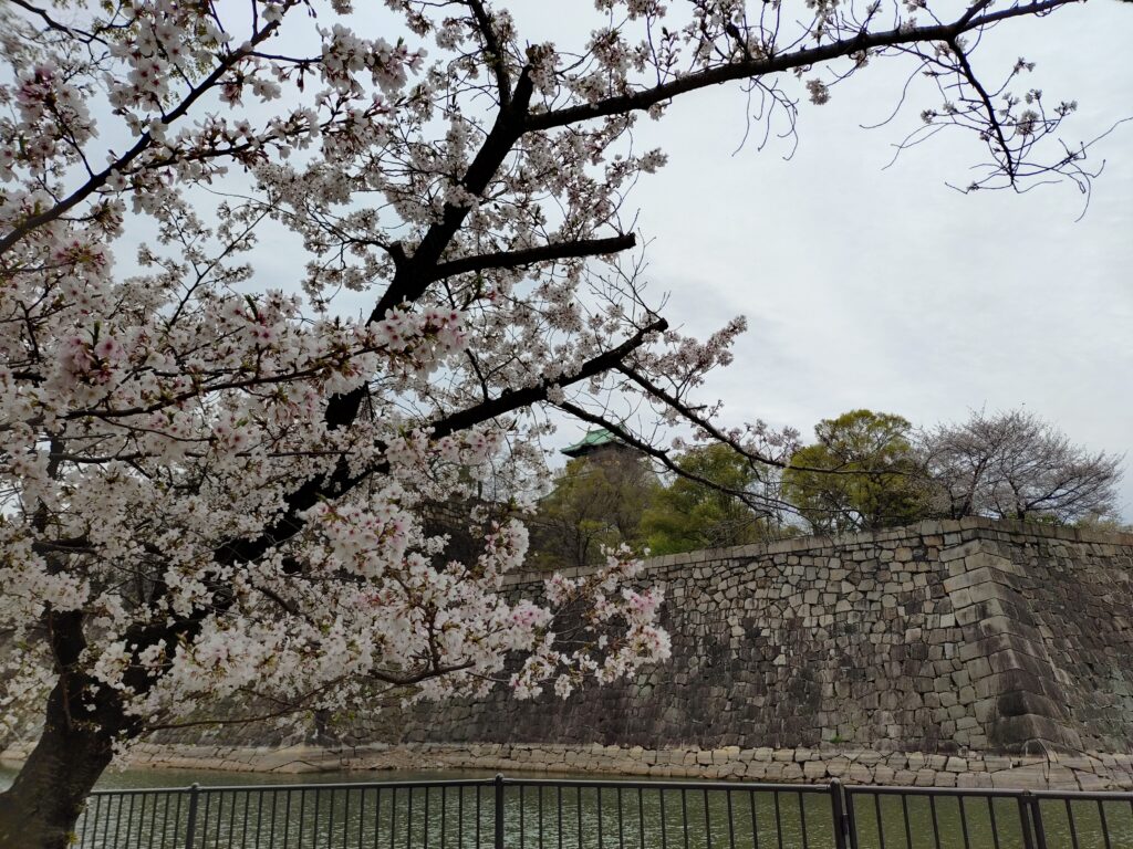 大阪城公園なのだから「大阪城公園駅」で降りるのがいいのだと思い、大阪城公園駅で降りたのですが、大阪城公園までかなり歩きました。森ノ宮駅から歩いている人の方が多かったです。他にも「大阪ビジネスパーク駅」(実はこの駅が一番近い)、「大阪城北詰駅」、「天満橋駅」などあります。桜を見ながら歩くならどの駅でもいいのですが、目当ての場所があるなら事前に調べたほうがいいですね。(私が言うのもなんですが…)