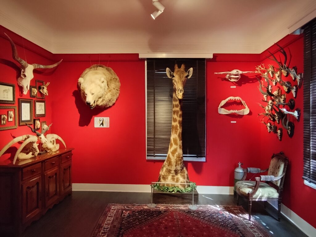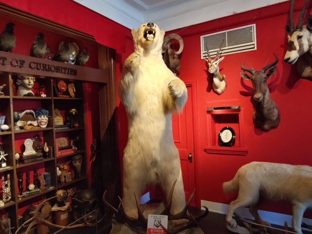 おしゃれな異人館とは異質な動物の剥製たち。伝説の冒険家をイメージしたとか…びっくりしたー