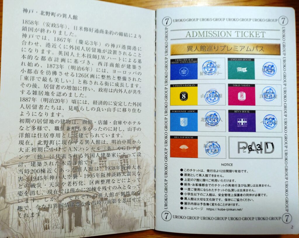バラバラに買うのもいいですが、行きたい異人館を決めて、セットで買うのが、お得だと思います。